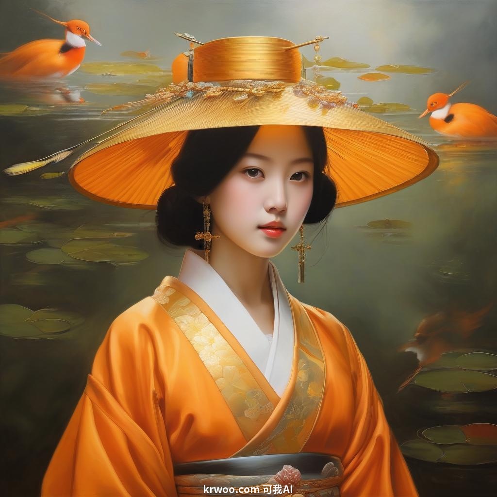 AI 油画肖像提示词中文:作品为一幅油画,描绘了一位穿着橙色服装、佩戴金色珠宝的女孩的迷人特写肖像,散发着童真和纯真。 她穿着传统的日本服装,完美地体现了平野美穗的风格精髓。 灯光增强了她的金色光芒,而柔焦则营造出梦幻、空灵的氛围。 颜色主要是浅黄色和深棕色,提供温暖的对比,突出整体视觉吸引力。 精心制作,以深度感和真实感捕捉每一个细节。 这种风格让人想起 tondo,一种和谐的构图,展示了元素之间的完美平衡。