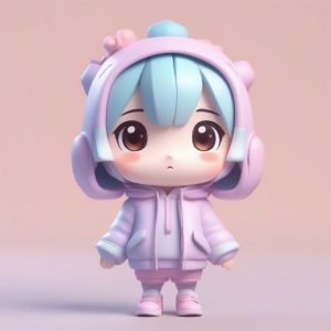 A fashionable retro 80s chibi boy, wearing a bright pastel colors windbreaker, holding a miniature boombox. Solo, single minimalist anime character, kawaii chibi style. Full body standing photo, dynamic pose. Cute and rich expressions. High detail, 8K resolution, ray tracing. Soft studio lighting, pastel colors. Background: solid color, clean, simple, completely empty, no patterns.