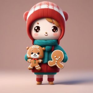 AI art prompt(English) – Christmas Sweater Chibi: Candy Red & Mint Green 3D Render Prompt