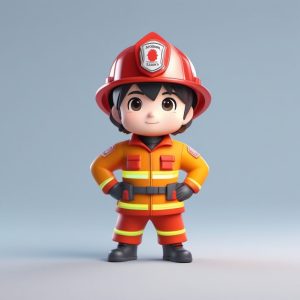 AI绘画提示词(中文) – 8K Q版消防员:紧急奔跑的动态与严肃专注表情渲染