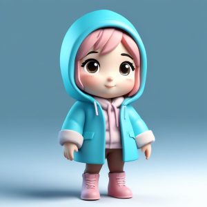 融合户外探险和Techwear元素,Q版女孩穿着实用且保暖的功能性外套,搭配徒步靴,手持保温杯。我们让她做出一个坚毅的表情,体现冬季户外活动的挑战性。C4D建模突出了服装的结构感。