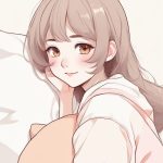 AI art prompt(English) – Minimalist Anime Girl with Hot Drink Latte Macaron Cel Shading