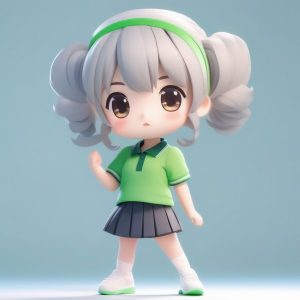 AI art prompt English – 2D Minimalist Chibi Tennis Player Girl Graphic Novel Style