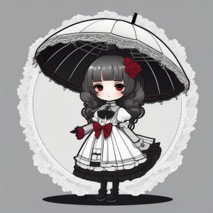 AI art prompt English – 2D Minimalist Chibi Gothic Lolita Prompt: High Saturation Vector Art
