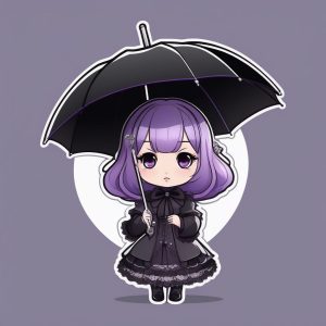 AI绘画提示词中文 – 2D极简Q版紫发哥特萝莉插画提示词:高饱和度矢量艺术技巧