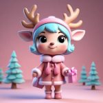 AI绘画提示词(中文) – 3D粘土风泰迪绒外套:超萌Q版女孩奶油色系冬装全身像提示词
