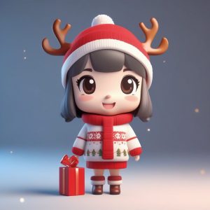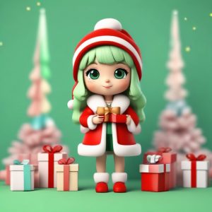 AI art prompt(English) – Ultimate Chibi Christmas Girl 3D Clay Blind Box Prompt (C4D Octane Render)