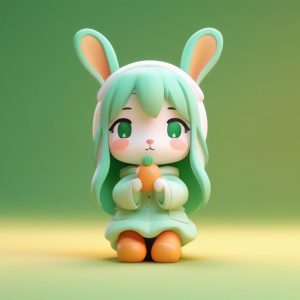 AI绘画提示词中文 – 3D软萌:抱胡萝卜的兔耳娘Q版盲盒模型渲染