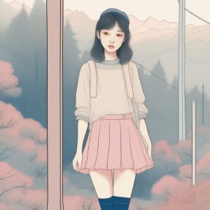 AI art prompt(English) – AI Illustration Tip: Japanese Girl in Striped T-Shirt and Shorts Summer Look