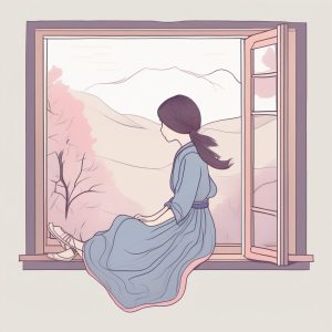 A hand drawn illustration featuring a soft Japanese fashion girl with double buns. The piece uses minimalist line art, defined by soft pastel colors in pink and light blue. The crayon style technique ensures warm colors and soft edges. This whimsical, storybook style image has a clear textured paper effect. Set against a solid pale purple background.