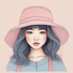 AI art prompt(English) – AI Inspiration: Japanese Girl with Retro Bucket Hat in Minimalist Line Art Style