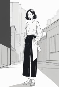 AI art prompt(English) – Side Profile Minimalist Line Art Full Body Japanese Girl Prompt