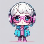 AI art prompt(English) – AI Minimalist Aesthetic: Soft Moe Japanese Girl and Bubbles, Pink Blue Healing Illustration
