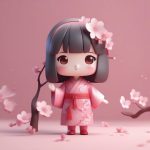 AI art prompt(English) – AI Illustration of Pink-Blue Cute Girl Holding a Heart Balloon: Solid Background Focus