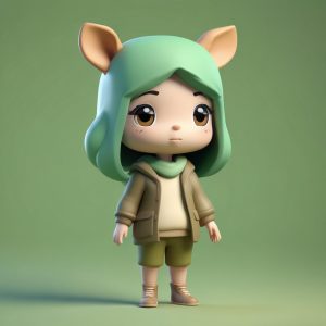 Single subject, solo, fashionable girl in a pink and blue outfit, smiling, full body standing shot. Anime minimalist style, using a macaron color palette and low saturation. Strict Cel shading style employed. Background: solid color, clean, simple, completely empty, no patterns, no details.