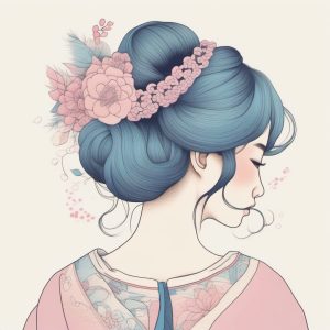 AI art prompt(English) – AI Line Art Technique: Minimalist Fashion Illustration of Japanese Girl with Retro Tote Bag