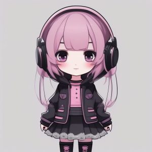 AI绘画提示词(中文) – 暗黑系卡哇伊:低饱和粉与平台靴的Q版全身站姿插画AI创作指南