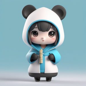 AI art prompt English – Panda Ear Chibi Eating Bamboo Snack Clay Figure