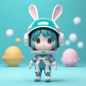 AI art prompt English – Librarian Chibi Bunny: Holding Stack of Books 3D Clay