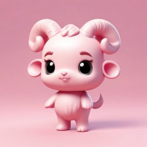 一个全身站立的可爱Q版白羊座角色,头大身小,采用 Pop Mart 盲盒手办美学。角色采用带有金属高光的粘土材质,处于一个充满活力的运动姿势。这是一个高保真的3D渲染,使用C4D和Octane渲染器,注重光线追踪和柔和工作室照明。色彩为活力红和亮金色柔和色彩。背景是干净、简单的纯浅红色,高细节8K渲染。