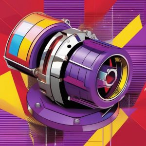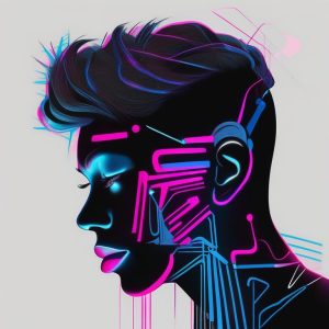 以Brutalist Bauhaus海报风格描绘的人物与机械融合体,人物拥有棱角分明的特征和简化的肢体结构,与金属几何机械元素无缝融合。配色采用工业红、枪灰色和点缀霓虹黄。背景由生硬抽象的形状组成,强烈的明暗对比突出了主体的结构复杂感。
