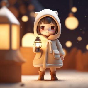 AI art prompt(English) – Ice Cream Color Chibi Girl Holding Snowflake 3D Prompt