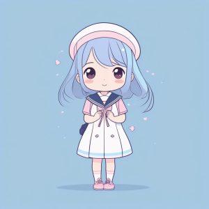AI art prompt English – Mint Green and Pale Yellow Chibi Doodle