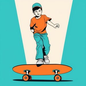 AI绘画提示词中文 – 波普艺术风Q版男孩特写:几何抽象与扁平色彩设计