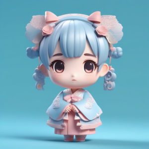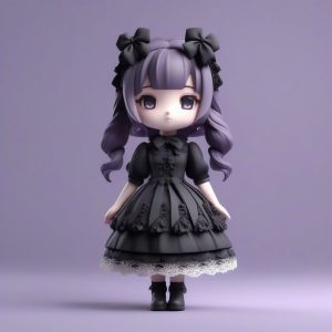 AI绘画提示词中文 – C4D盲盒甜心:Q版甜美洛丽塔站立手办,纯色背景渲染