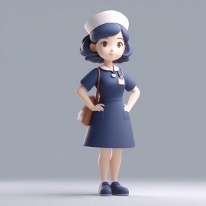 A single minimalist anime character kawaii chibi nurse, wearing a classic white uniform and cap, Cute, Clay, 3D render, C4D, Octane render, blind box style. Full body Standing Photo, solo. She is playfully holding an oversized syringe, winking confidently. Round and cute features, with soft depth of field effect. Clean, simple, solid sky blue background, no details or patterns.