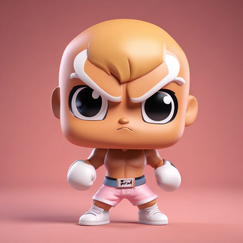 A solo minimalist anime character, kawaii chibi boxer, in an explosive dynamic pose of punching, angry and determined expression. Full body standing photo, dynamic pose, Cute and rich expressions. Clay texture, blind box aesthetic, Pop Mart style. C4D, 3D render, Octane render, Ray tracing, high detail, 8K. Pastel colors, soft studio lighting. Background: solid color, clean, simple, completely empty, no patterns, No textures.