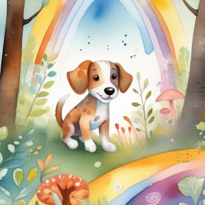 AI art prompt English:rainbow watercolor doodle, whimsical forest scene, cute animals exploring, colorful brushstrokes, sketchbook diary style, playful composition, high detail