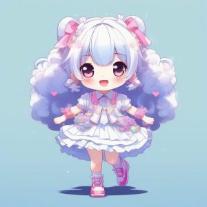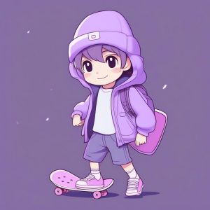 AI art prompt English – Cool Chibi Anime Boy Character Card: Cyberpunk Streetwear and Pastel Light