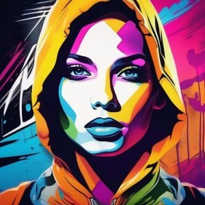 Trendy graffiti illustration of street sneakers, bold spray paint strokes, neon color accents, stylized shading, urban pop art look, dynamic free-form sketchy linework