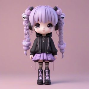 AI art prompt English – Neon Streetwear Chibi Girl Blind Box Full Body C4D Render