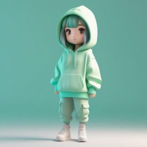 AI绘画提示词(中文) – 潮流街头风Q版手办教程:Oversize卫衣女孩C4D全身站立渲染图