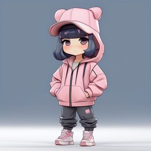 AI art prompt(English) – Streetwear Chibi Full Body Standing Photo C4D Prompt