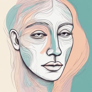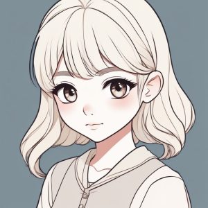 A super cute chibi illustration of a minimalist line art Japanese fashionable anime girl avatar. The drawing emphasizes a hand drawn crayon style and warm colors, possessing a whimsical storybook quality. Details show fine colored pencil strokes and soft edges, maintaining a textured paper surface.