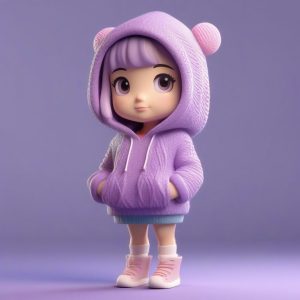 AI绘画提示词(中文) – 超萌Q版兔耳娘:3D粘土材质手办,冬日围巾穿搭与娇羞表情