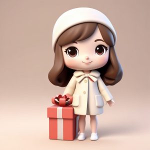 AI绘画提示词(中文) – 吃马卡龙的Q版少女:毛球帽与喜悦表情的C4D建模