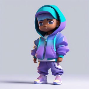90年代的复古美学正在强势回归,其标志性的大胆几何图案和高饱和度色彩极具视觉冲击力。要将这种潮流融入Q版(Chibi)角色,需要强调服装的块状色彩和动态感。我们利用C4D渲染的反射特性,让粘土材质呈现出高光泽效果,模拟乙烯基或塑料的质感,增强复古潮流感。通过光线追踪技术捕捉细节,确保角色全身站立的姿态充满活力。选择一个纯青色背景,以增强整体配色的复古跳跃感,轻松生成8K高清全身像。
