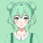 AI art prompt(English) – Dark Green Minimalist Avatar: Girl and Black Cat, Low Saturation