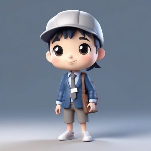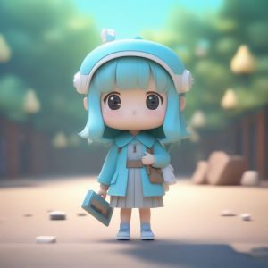 一个全身站立的可爱Q版赛博朋克醉拳大师,大头小身,盲盒风格,手持一个带有迷你纳米酿酒系统的科技酒葫芦。使用黏土材料进行3D渲染,通过Octane渲染实现。场景采用柔和的工作室照明,充满活力的粉彩色调,以及光线追踪。背景:纯色柔和的米黄色,干净,简单,完全空白,无图案。渲染分辨率8K。