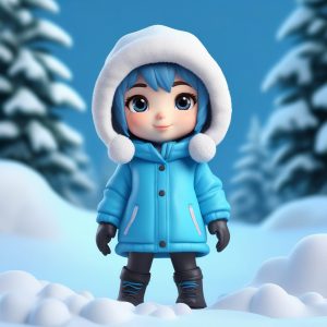 AI绘画提示词中文 – 创意AI提示词:极简风Q版女孩的调皮眨眼全身插画(纯色背景)