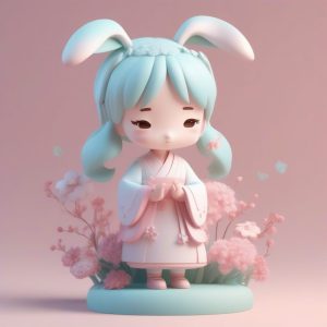 AI art prompt English – Chibi Hanfu Girl with Peach Blossoms Spring Theme 3D Blind Box