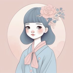 线稿构图进阶技巧:利用纯色背景的留白和柔和边缘,最大限度突出粉蓝色系日系女孩的极简线条美学。