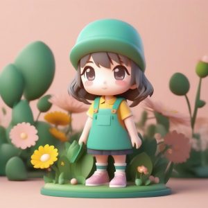 AI art prompt(English) – Solid Color Background Chibi Gardener 3D Clay Style Prompt