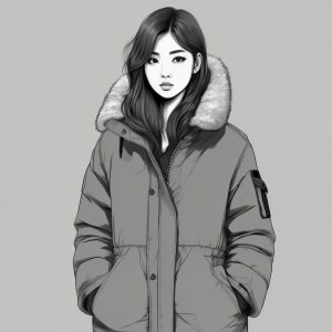 AI绘画提示词(中文) – 🧥纯欲天花板:温柔燕麦色系线稿插画,冬日大衣少女全身图速存