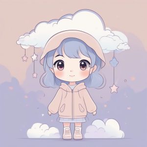 AI art prompt English – Baby Blue Balloon Chibi: Lighthearted Pastel Doodle