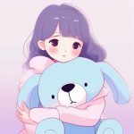 A lighthearted simple doodle illustration of a cute Japanese girl contemplating under soft lamplight in a winter night. The artwork emphasizes minimal details and soft rounded lines. It features a charming aesthetic, using a pastel color palette with gentle shades of pink lavender and baby blue. Her expression is innocent and serene.